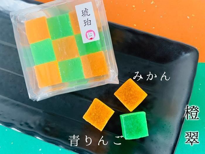 外はシャリシャリ薄氷のよう、中はしっとり歯切れのよい食感の琥珀糖です。