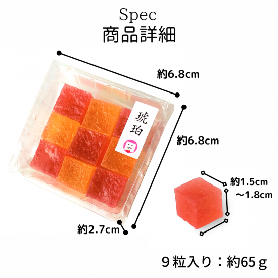 外はシャリシャリ薄氷のよう、中はしっとり歯切れのよい食感の琥珀糖です。